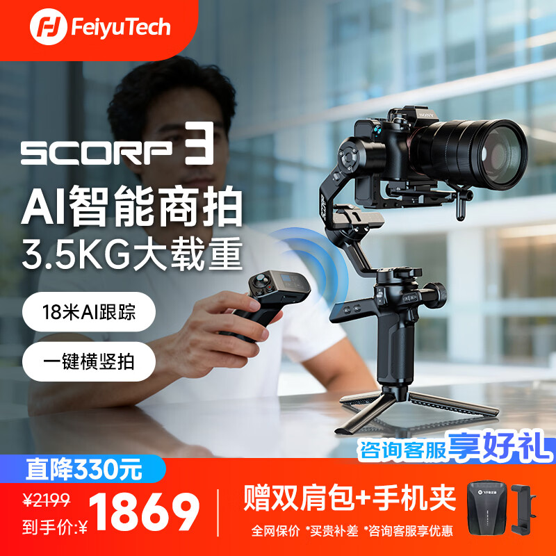 Feiyu 飞宇蝎子Scorp 微单单反稳定器 专业三轴防抖手持云台 vlog摄像机 提握一体相机云台