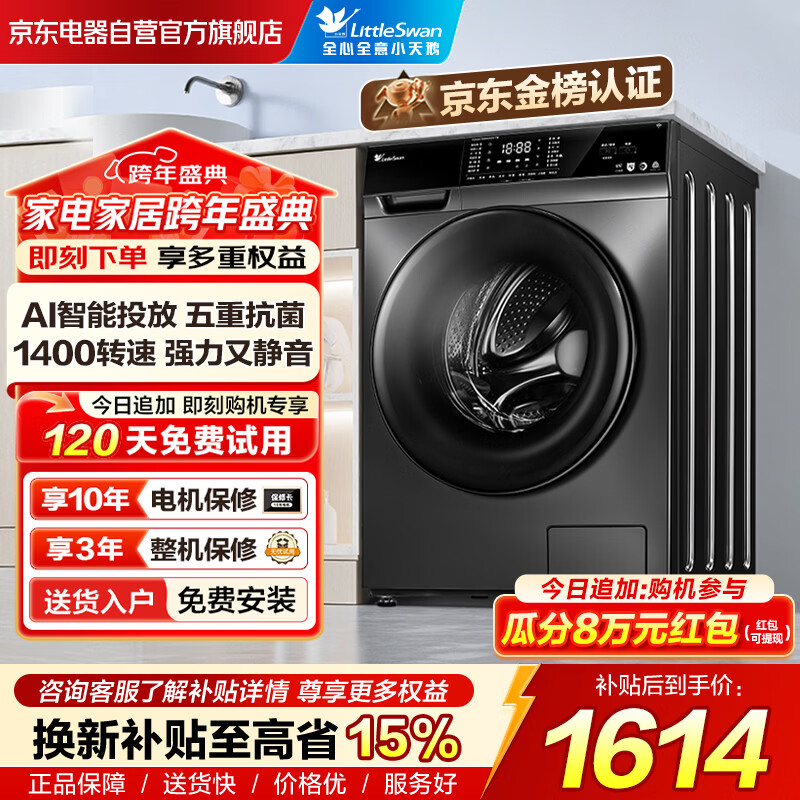 小天鹅(LittleSwan)滚筒洗衣机全自动国家补贴 AI智能投放 家用超薄10公斤 TG100VT616WIADY-T1B 一级能效 以旧换新