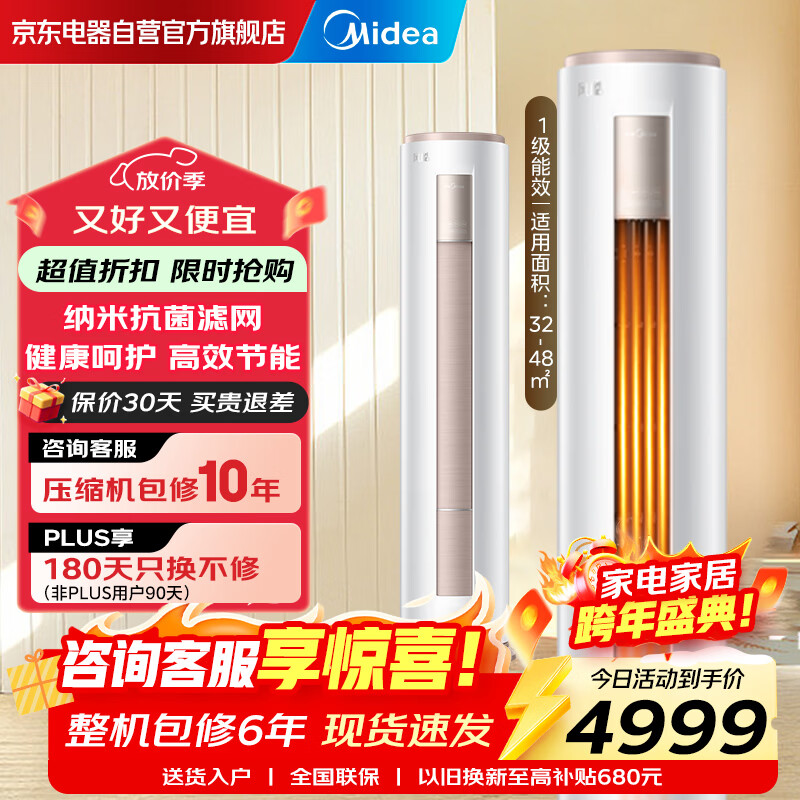 美的空调 大3匹柜机 风酷 新一级能效变频冷暖除菌除湿客厅立柜式圆柜 家电国家补贴 KFR-72LW/N8MJC1B