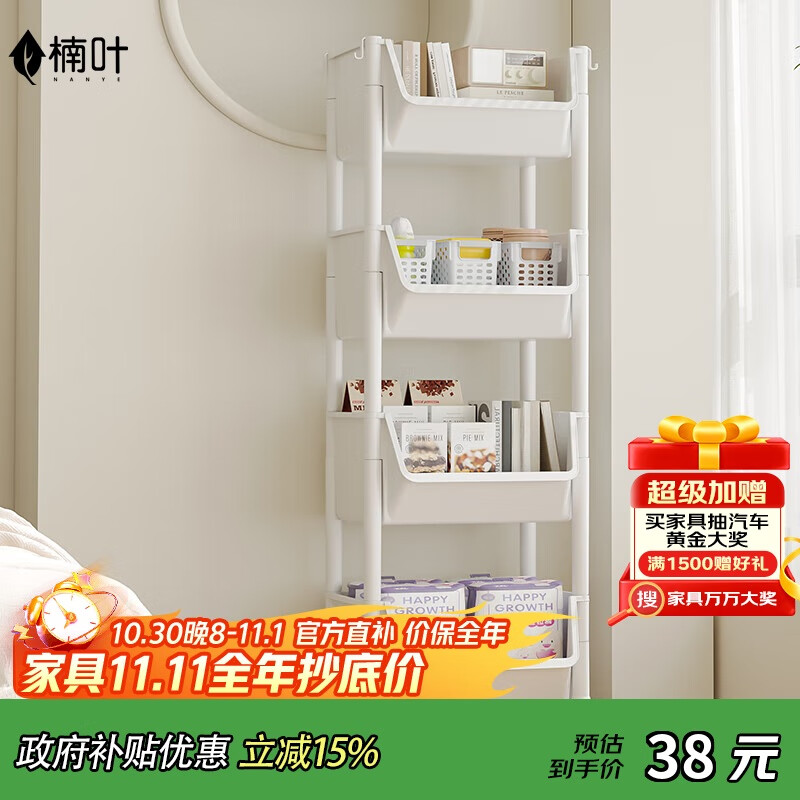 楠叶置物架 厨房置物架 零食置物架 置物架落地 可移动小推车SKJ-4-JD