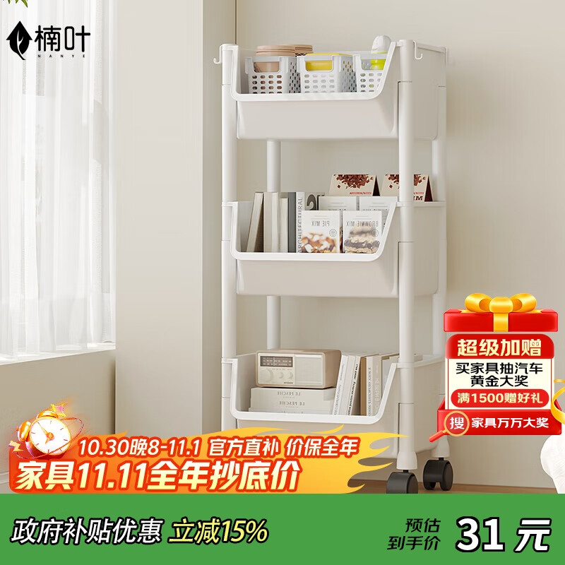 楠叶置物架 厨房置物架 零食置物架 置物架落地 可移动小推车SKJ-6-JD